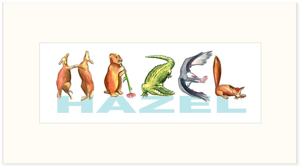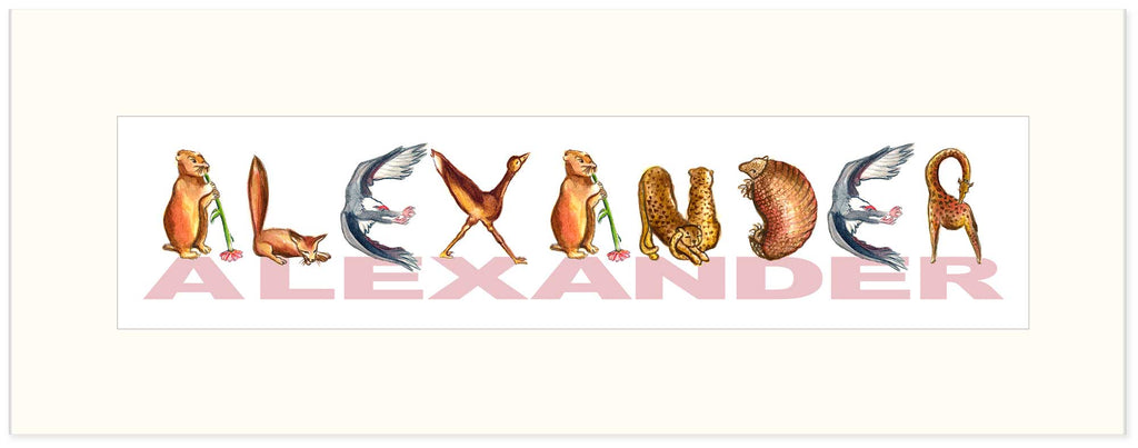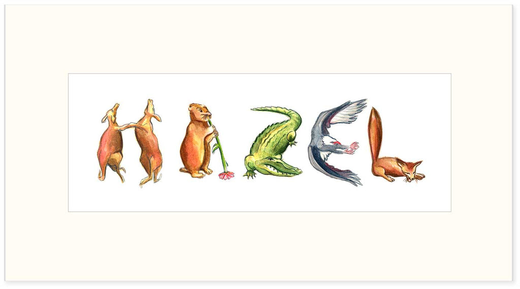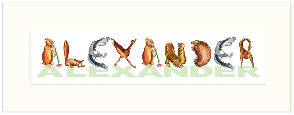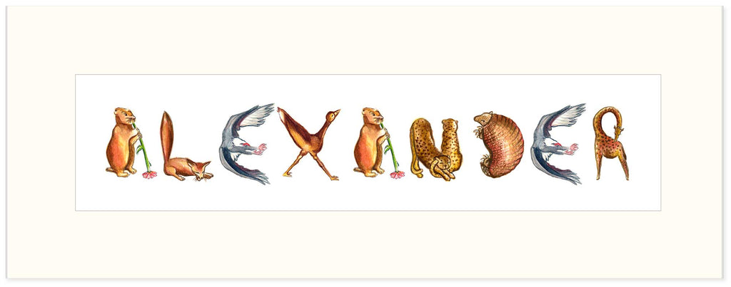 CN-8 Custom Name Animal Alphabet Art - with White Archival Mat